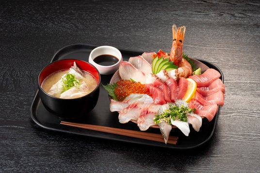本まぐろを使った豪華な海鮮丼です。付け合わせに鯛のあら汁が付きます。近隣では珍しい本まぐろ入り海鮮丼を是非ご賞味ください。