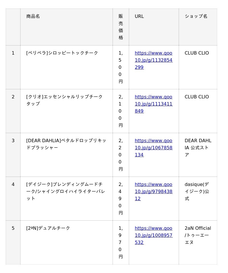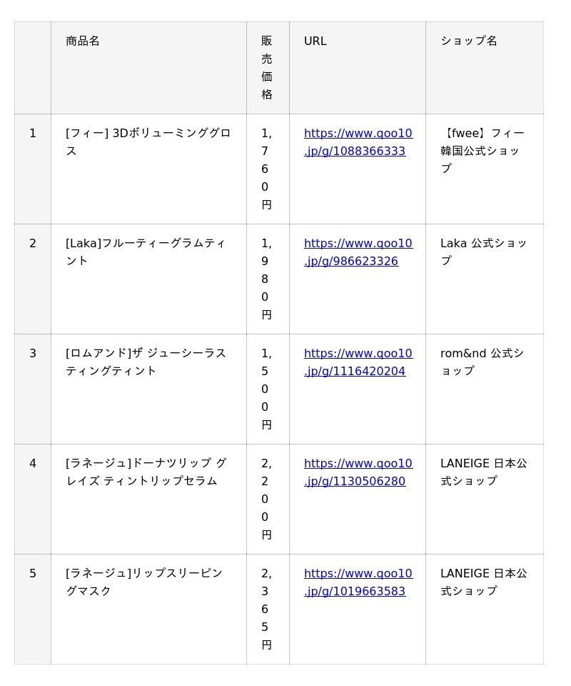 インターネット総合ショッピングモール「Qoo10」を運営するeBay Japan合同会社(本社:東京都港区、代表取締役:グ ジャヒョン)は、Qoo10で人気のコスメカテゴリーの中から、『リップ』『アイシャドウ』『チーク』と、月替わりで1アイテムをピックアップした、月間販売数TOP5※をご紹介していきます。