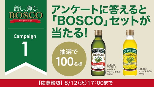 アンケートに答えると抽選で100名様に「BOSCO」セットが当たる