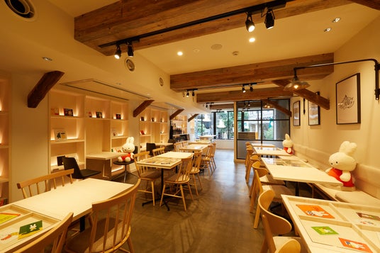 ディック・ブルーナ テーブルは、「ディック・ブルーナのイラストと共にワインと食事と会話が楽しめるお店」として誕生しました。ディック・ブルーナの名を冠し本格的にお酒を提供する世界初のワインバル&カフェレストランです。2020年7月に神戸店、2021年3月に横浜店がオープンしました。常設店内の飲食スペースはディック・ブルーナの絵本がディスプレイされたカフェスペースのほか、ブラック・ベアの作品に浸れるシックな空間もあり、ディック・ブルーナの多彩な世界へ誘います。