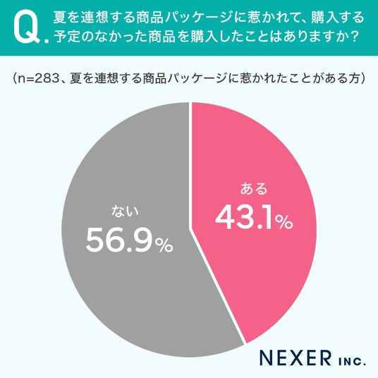 43.1%と4割以上の方が夏を連想する商品パッケージに惹かれて、購入する予定のなかった商品を購入したことが「ある」と回答しています。