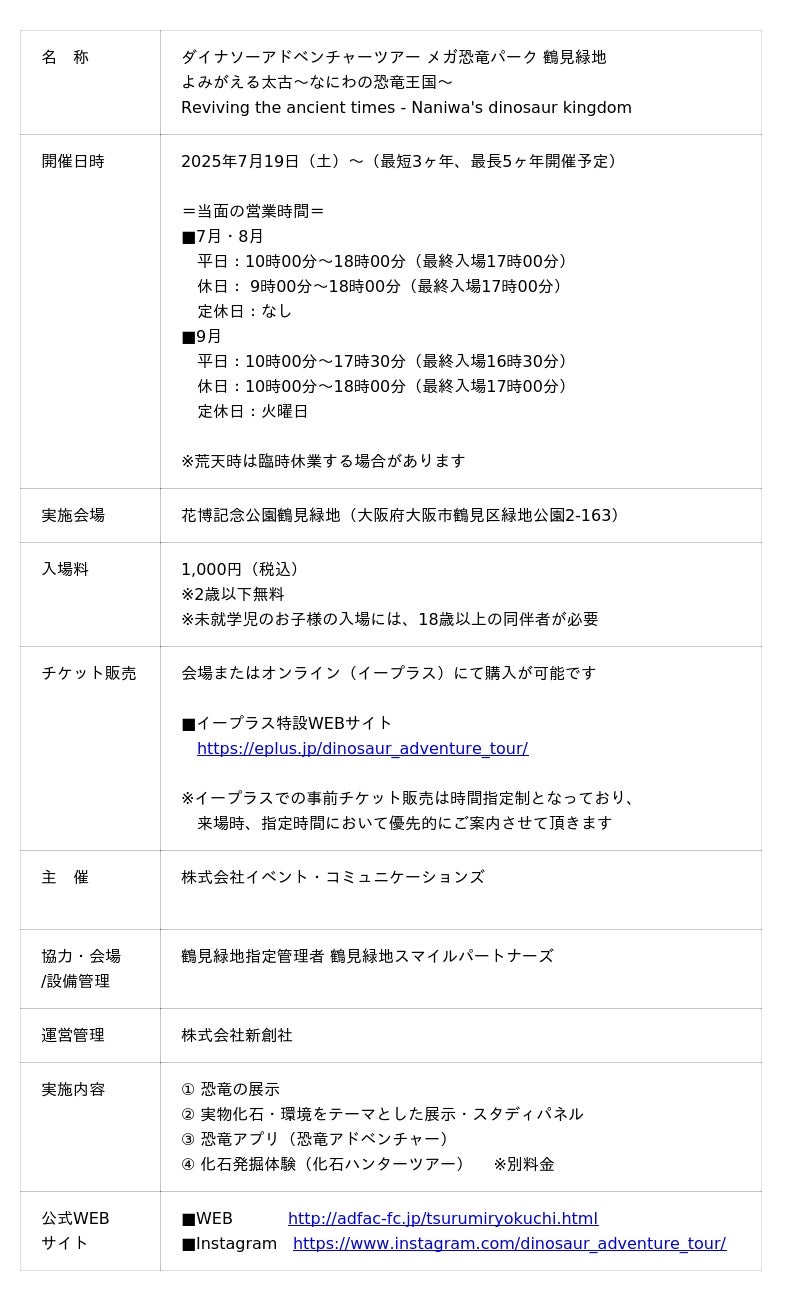 「ダイナソーアドベンチャーツアー メガ恐竜パーク 鶴見緑地」の事業趣旨