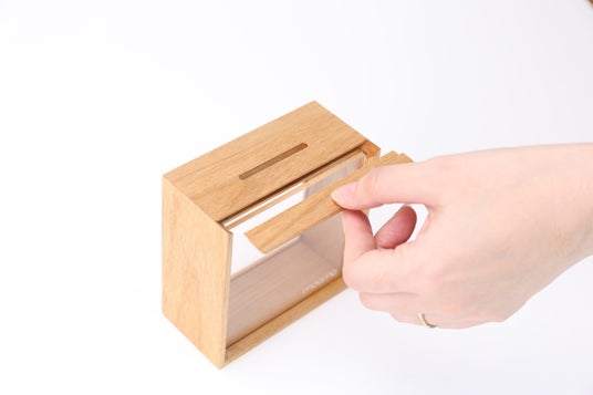 【 ココロを贈る 名入れギフトOkulu 】"貯める"を"飾る"に変える。無垢材のぬくもりと透明アクリルの美しさ