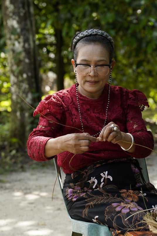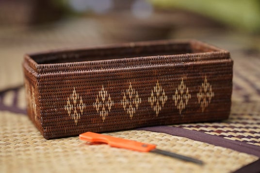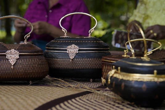 「ヤーンリパオ」とは、タイ南部に自生するツル性植物の名。この植物の茎を乾燥・加工し、手作業で精緻に編み込んで仕上げるバッグは、一点製作に約2か月を要するほど繊細な工程を経て生まれます。