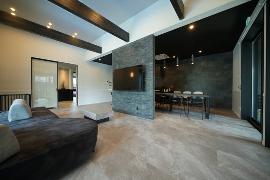 ソファに腰かけてプールを眺めたり、65インチの大画面で映画鑑賞を楽しんだり、愛犬とゆったり過ごしたりと、思い思いの時間をお楽しみいただけます。また、キッチンやダイニングエリアからBBQテラスへはシームレスな動線を確保。気の向くままにお食事やくつろぎの時間をお楽しみいただけます。