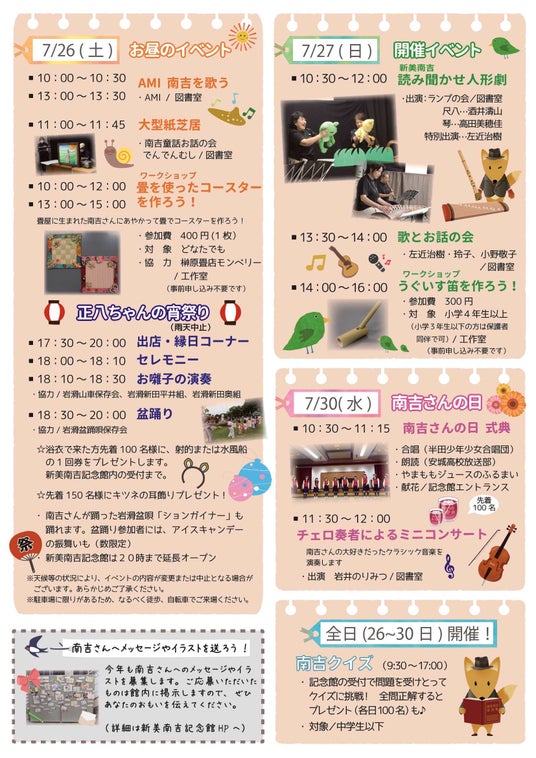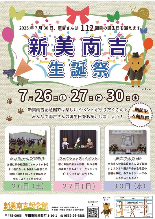 【愛知県半田市】7/26(土)、27(日)、30(水)新美南吉生誕祭!南吉さんの誕生日をお祝いしよう!<新美南吉記念館>