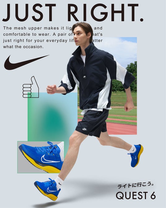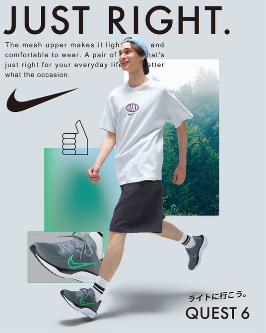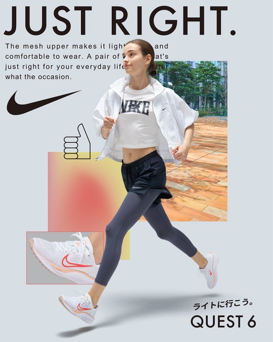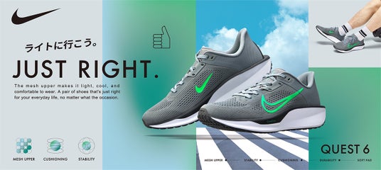 「ライトに行こう。JUST RIGHT.」をコンセプトに"ちょうどいい"機能性とデザインが日常にフィットするスポーツシューズ NIKE QUEST 6 新ビジュアル公開