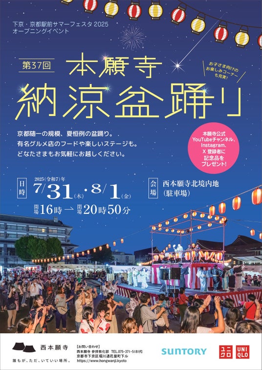 【西本願寺】毎年恒例のお西さん名物!「第37回本願寺納涼盆踊り」7月31日(木)・8月1日(金) 開催!《入場無料》