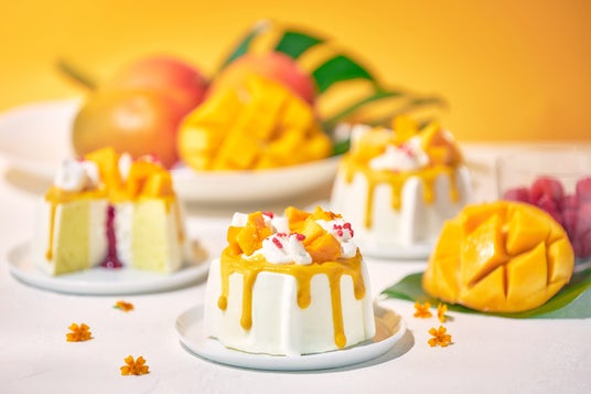 新宿店では、トップをマンゴーと生クリームで華やかにトッピングし、エディブルフラワーを添えてトロピカルな夏を彩るシフォンケーキに仕上げました。