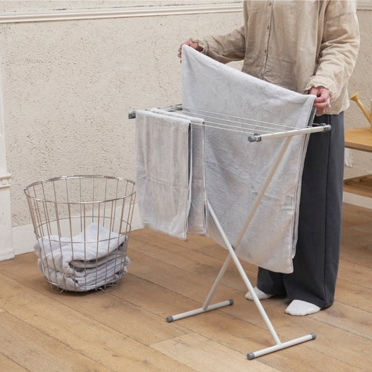 必要なときだけサッと広げて使える、折り畳めるバスタオルスタンドが新登場