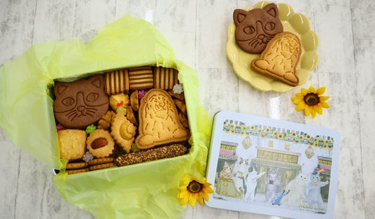 猫の可愛らしさを余すことなく表現したクッキー缶を中心に、猫の魅力をスイーツや雑貨を通して表 現しています。