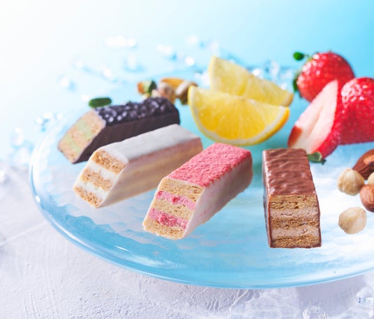 爽やかな酸味が特徴のホワイトチョコクリームと苺のドライチップをサクサクのパイでサンドしたミルフィーユです。