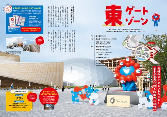 会場全体が一目でわかる「大阪・関西万博会場案内MAP」から、世界各国のパビリオンが集まるゾーン別パビリオンガイドをはじめ、見どころ満載のエリア情報を完全網羅。