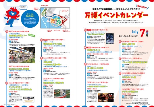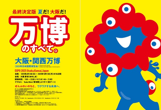 万博を快適かつ効率よく回るための攻略情報や会場内で食べられる世界の絶品グルメや大阪の暑い夏を乗り切る対策グッズ、そして会期中のイベントカレンダーを掲載。