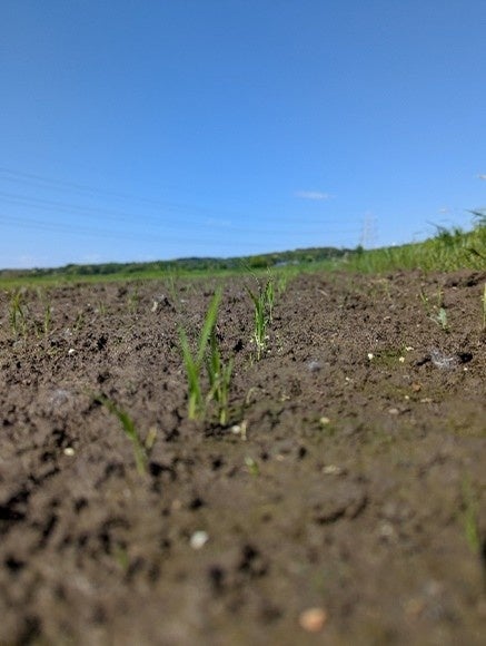 バイオスティミュラント資材を使用し、稲の栄養素吸収率を高めることで水稲種の乾田栽培を可能にします。