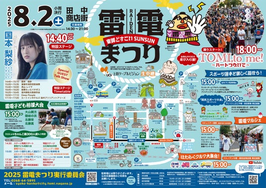 2025年8月2日(土)、田中商店街にて東御市の夏を代表する一大イベント「2025雷電まつり ~東御どすこいSUNSUN~」を開催します。