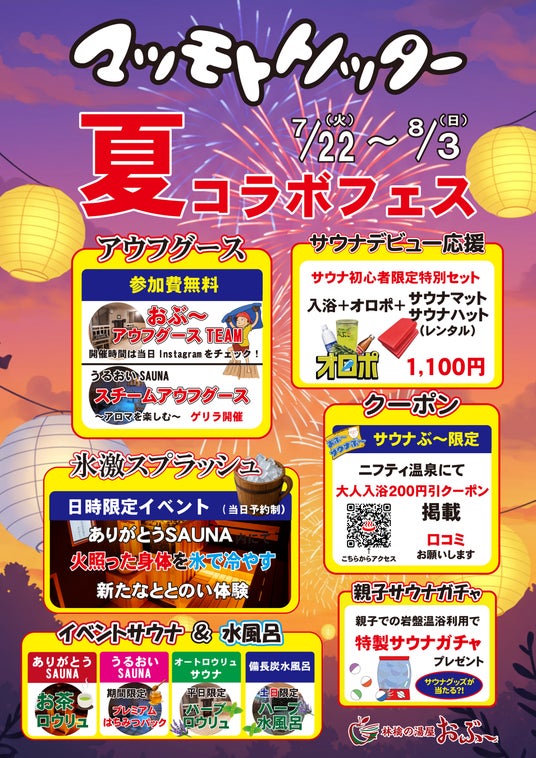 ■林檎の湯屋おぶ~では「夏コラボフェス」開催(7/22~8/3)