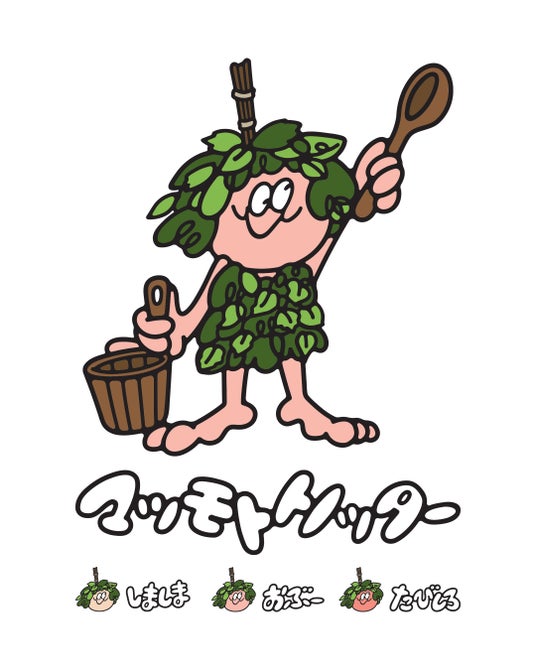 3サウナ施設の守り神をイメージしたキャラクター頭には松本産のヴィヒタを被せています。