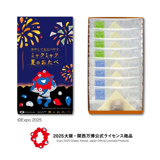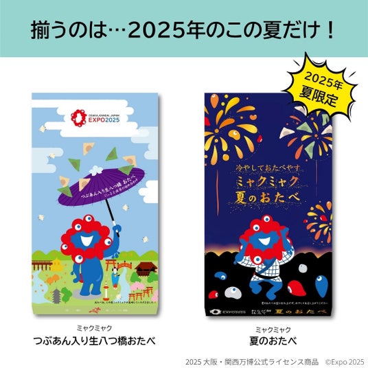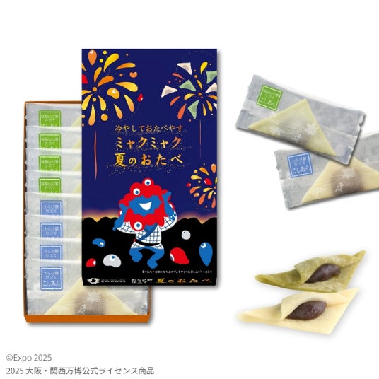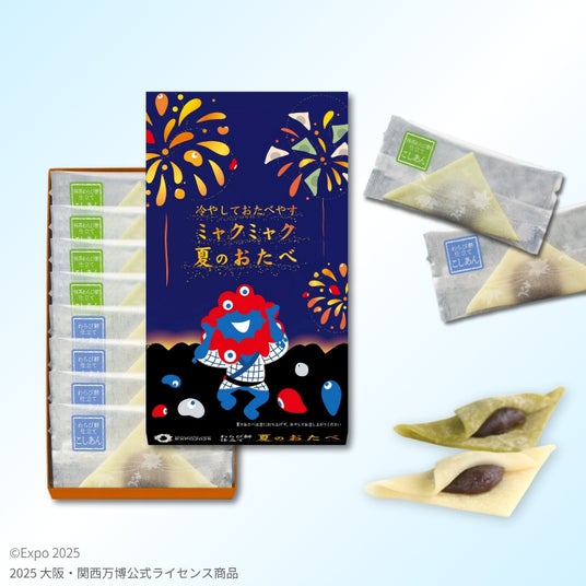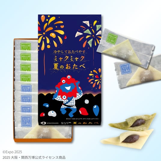 株式会社美十(本社:京都府京都市、代表取締役社長 CEO:酒井宏彰)は、大阪・関西万博のさらなる盛り上がりに合わせ、新たな2025大阪・関西万博公式ライセンス商品「ミャクミャク 夏のおたべ」を発売します。公式キャラクターのミャクミャクをデザインに使用した、今夏だけのパッケージです。2025年7月20日(日)より期間限定の販売です。
