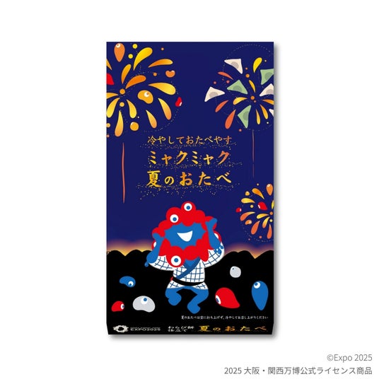「ミャクミャク 夏のおたべ」は空に打ち上げず、冷やしてお召し上がりください。配りやすく・食べやすい個包装です。