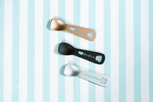 アイス専用スプーンあたみんと(R)のロゴと公式キャラクターの"みんくま"が刻印された世界でここにしかないアイス専用スプーン(熱伝導率の高い金属でできており、手の体温がスプーン先端にすぐ伝わるって、アイスがすくいやすくなります)色 :シルバー、シャンパンゴールド、ブラック