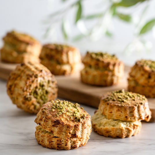 内容:長野県の豊かな自然の中で育った天然の熊笹を丸ごと粉末にして使用しています。淡い緑色に、ほのかな笹の香りを楽しめるクマザサスコーンです。ホワイトチョコレートと合わせて優しい甘さに焼き上げ、抹茶のクランブルをトッピングしました。CHAVATY白馬ならではの特別な味わいをお楽しみください。