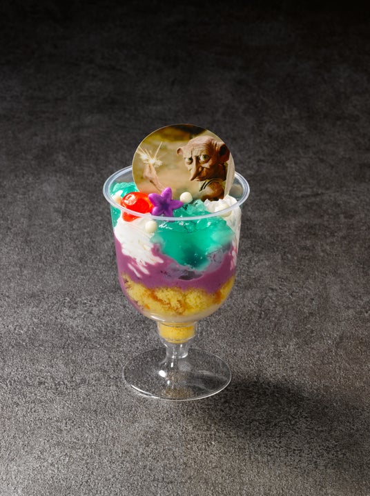 映画2作目『ハリー・ポッターと秘密の部屋』に登場した、ペチュニアおばさんお手製のケーキがプチデザートに。ミントゼリーとブルーベリーヨーグルトがベースになった爽やかな味わいは、食事の後に欲しくなる事間違いなし。