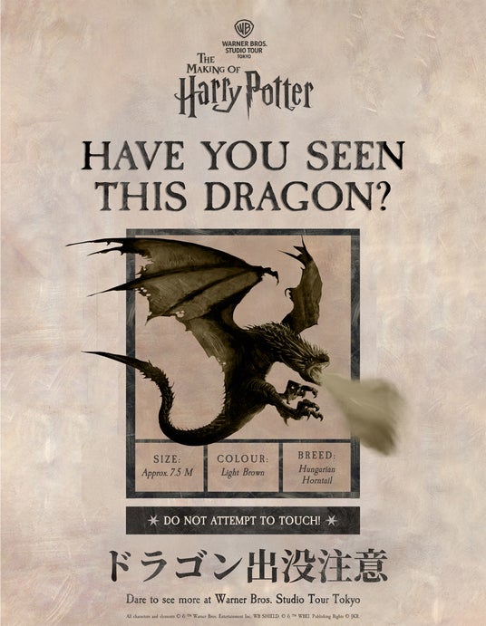 出没場所は、公式WEBサイトおよび公式SNSにて順次公開。映画制作者の手によって命を吹きこまれたこのドラゴンを、スタジオツアー東京の外で間近で体感いただけるこの貴重な機会に是非お立ち寄りいただき、映画制作の舞台裏や職人技の魔法をご覧ください。