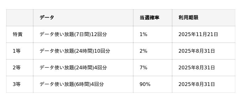 抽選でデータが必ず当たるトッピングです。期間中、何度でもチャレンジいただけます。