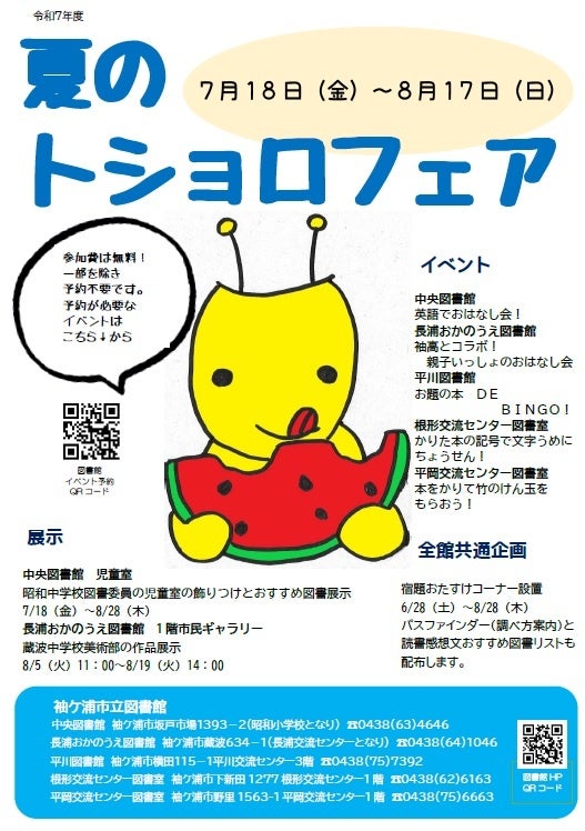 【千葉】袖ケ浦市立図書館「夏のトショロフェア」を開催します