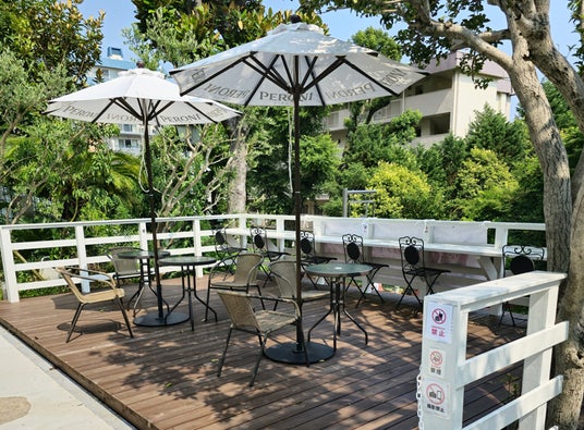 美術館併設のカフェは、北野通りを望むテラス席が魅力。こだわりのコーヒーやスイーツをゆったりと楽しめる癒しの空間です。