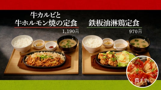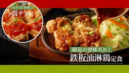 このたび「やよい軒」では、現在販売中の鉄板フェア第1弾『牛カルビと牛ホルモン焼の定食』と第2弾『鉄板油淋鶏定食(4個)』『鉄板鶏チリ定食(4個)』のTVCMを7月18日(金)より放映いたします。鉄板フェア第1弾・第2弾のそれぞれの魅力がテンポよく切り替わり、食欲をそそる映像と印象的な音楽で訴求したCMとなっております。