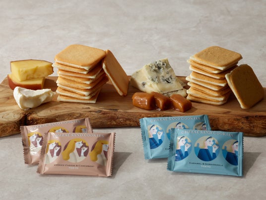 『クラシックチーズサンド』は、しっかりとしたチーズ感のゴルゴンゾーラチョコレートの風味と、カラメルラングドシャの甘くコクのある味わいが絶妙に絡み合う『カラメル&ゴルゴンゾーラ』と、芳醇なスモークチーズの薫りと、甘く塩味のあるカマンベールチョコレートが混ざり合い、よりチーズ感を感じていただける『スモークチーズ&カマンベール』の2種類をご用意しており、それぞれの味わいをお楽しみいただける、アソートセットも人気の商品です。アソートセットは、様々なご用途にお遣いいただきやすいよう、18枚入りと26枚入りをご用意しております。