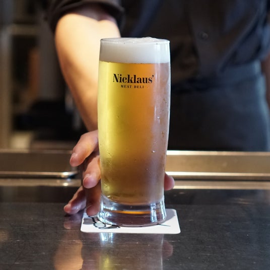 合わせる一杯には、R_BREWERY(アールブルワリー)のクラフトビール<へレス>を。造り手は、日本人で唯一のHWKブラウマイスター(※)の資格を持つ義本健太氏。麦のやさしい甘みとキレのある後味が特徴で、繊細な味わいを丁寧に造り上げています。そのやさしい甘味がソーセージの辛さを包み込み、あと味はすっきり爽快。暑い夏にぴったりの、心地よいペアリングです。