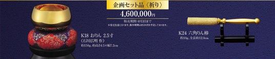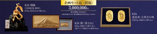 大丸福岡天神店で開催する大黄金展だけで販売する限定の企画セット品「祈り」 (4,600,000円)、「招福 (3,000,000円)もご用意しています。