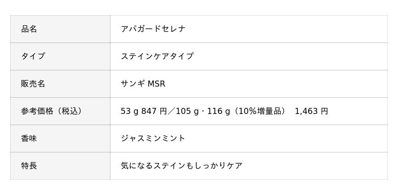 株式会社サンギ(本社:東京都中央区築地、代表取締役社長:ロズリン・ヘイマン)が展開する、美白高機能歯みがき売上No.1*シリーズ「アパガード」のステインケアタイプ「アパガードセレナ」が10%増量品を数量限定で発売いたします。増量品は2025年7月18日(金)より出荷を開始、全国のドラッグストアやスーパー、ホームセンター等で販売。パッケージ上部の10%増量マークが目印です。