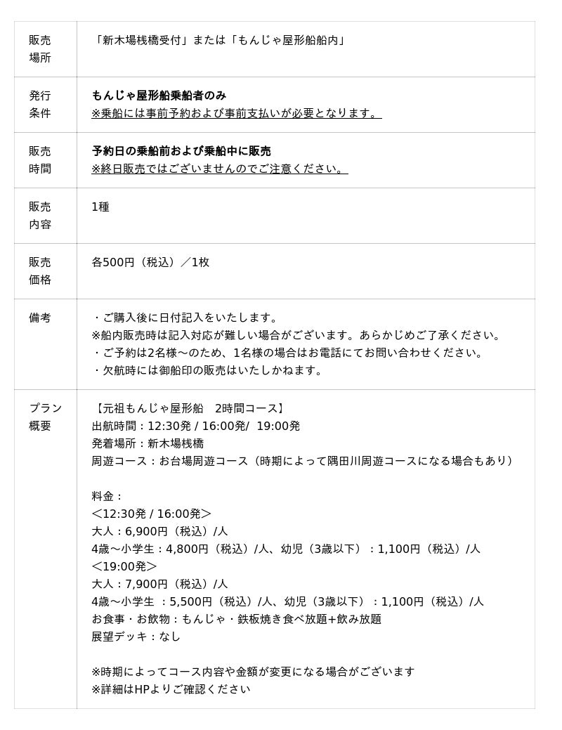 屋形船で初!「元祖もんじゃ屋形船 江戸前汽船」にて御船印の販売が7/19(土)よりスタート! 【江戸前汽船×御船印】
