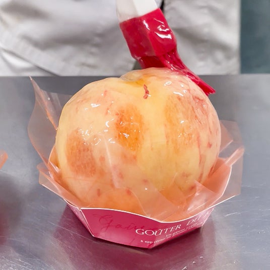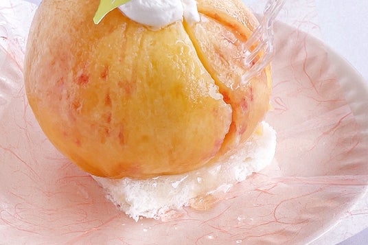 毎年、販売を心待ちにしてくださっている皆さまから、「今年はいつから?」「今年も出る?」との声が相次ぐ、夏季限定の超人気スイーツ【まるごと桃】。使用するのは、ジューシーな完熟桃をまるごと1個。