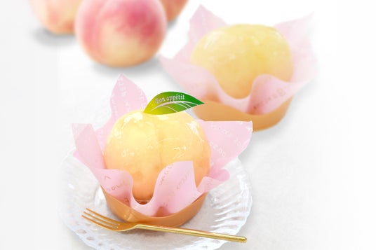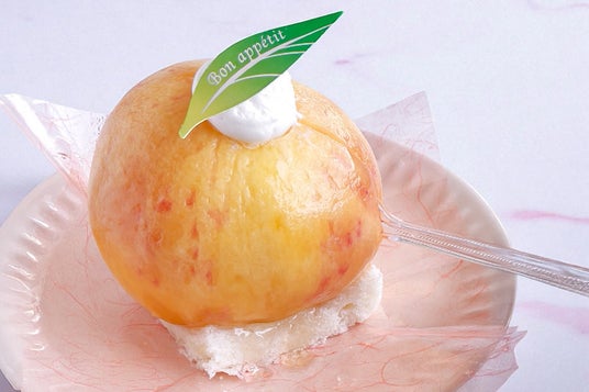 「お菓子のたいよう」が贈る、桃スイーツの女王--「まるごと桃」を、ぜひこの機会にご賞味ください。