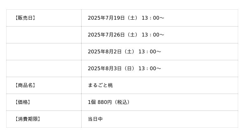 (株)太陽社、たった4日間だけの超レアスイーツ【まるごと桃】、2025年も販売決定!