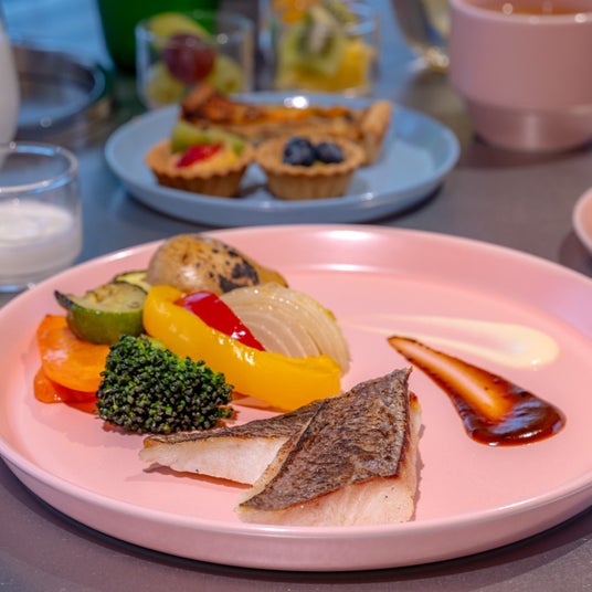 7時から10時までの朝食は、おにぎりや一番だしの味噌汁、パンや日替わりスープグリル野菜やキッシュなどビュッフェ形式でご用意
