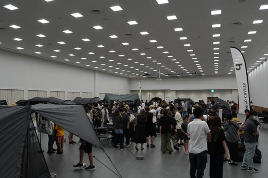 新作テントのサイズ感を体感したり、素材の質感を直接確かめることができる展示会です。
