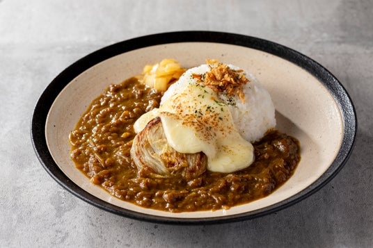 ・<左>玉ねぎを丸ごと1個使ったとろーりチーズカレー … 950円(税込)