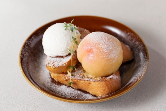 ・<左>【1日5食限定】鏡石町産桃を丸ごと使ったフレンチトースト … 1,400円(税込)