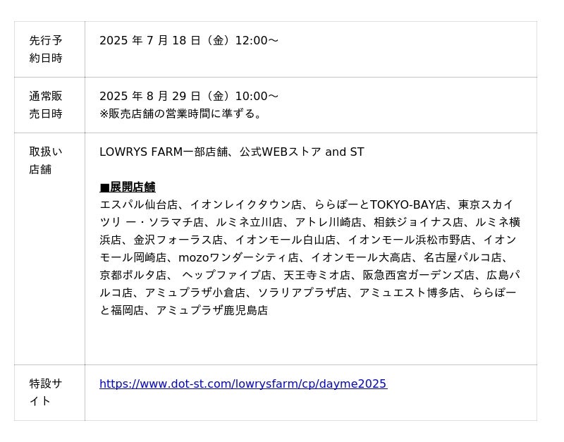 LOWRYS FARM よりオケージョンライン『dayme(デイミー)』が始動2025 年 7 月 18 日(金)より先行予約開始