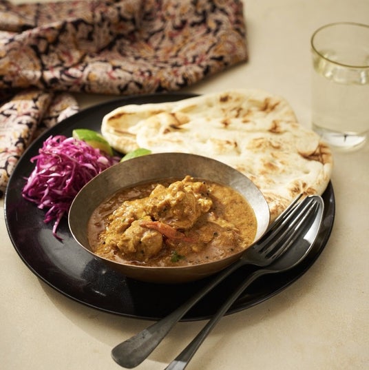 元々はタンドリーチキンの余りを活用するために生まれたカレーとも言われており、レシピにはタンドリーチキンが組み込まれています。香り高いガラムマサラとともに、スパイスの香りをお楽しみください。