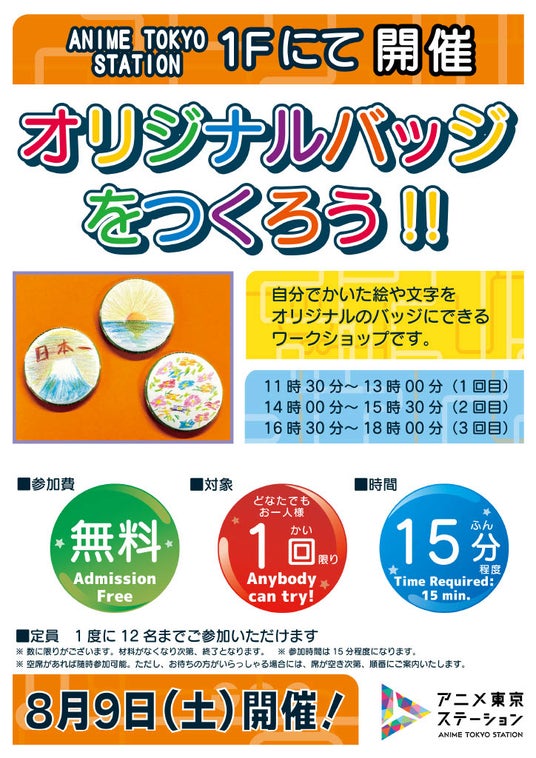 内 容:アニメ東京ステーションにご来館いただいた方(先着配布)や、「アニメ東京ステーションの夏まつり」期間中に開催するワークショップや子ども向け講座にご参加いただいた方にオリジナルうちわをプレゼント!