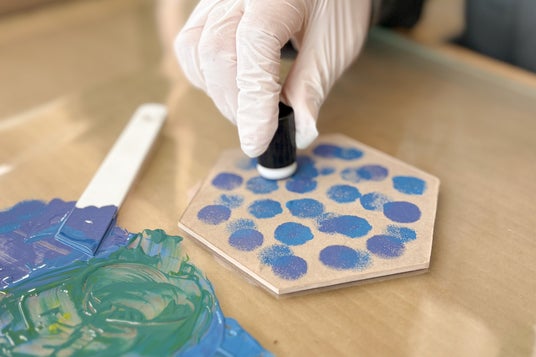 京都・西陣のカラフルな「色漆(いろうるし)」を使って、世界で一つだけの紙漆コースターをつくる体験。