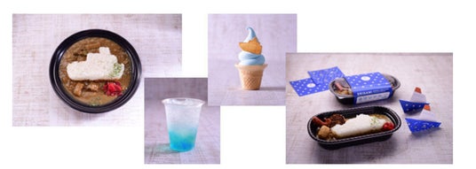 カフェメニューの一部(世界からさまざまな人やモノが集まり、皆さまと船の出会いの場になるような「港」をイメージし「海を渡って運ばれた食べ物」を集めたカフェ。カフェでは、オリジナルカレーをはじめとするお食事や、ドリンク・スイーツをお楽しみいただけます。)
