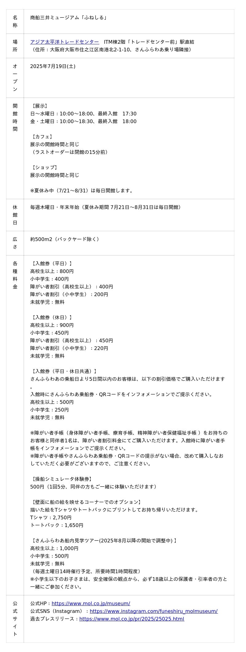 株式会社商船三井(社長:橋本 剛、本社:東京都港区、以下「当社」)の体験型ミュージアム 「ふねしる」が完成し、明日7月19日(土)大阪にオープンします。